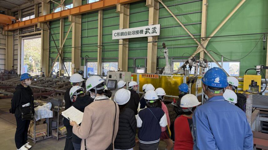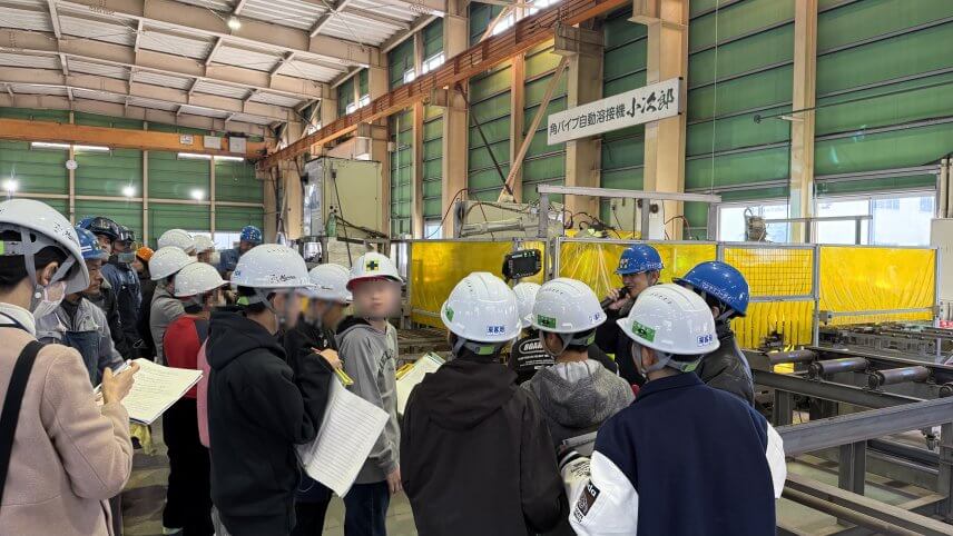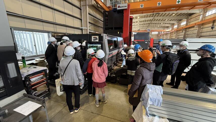 今回もいつものように、機械で鉄に孔をあけたり切断したりする様子や、ロボット溶接やレーザー加工機、プラズマ加工機を中心に見て頂きました。