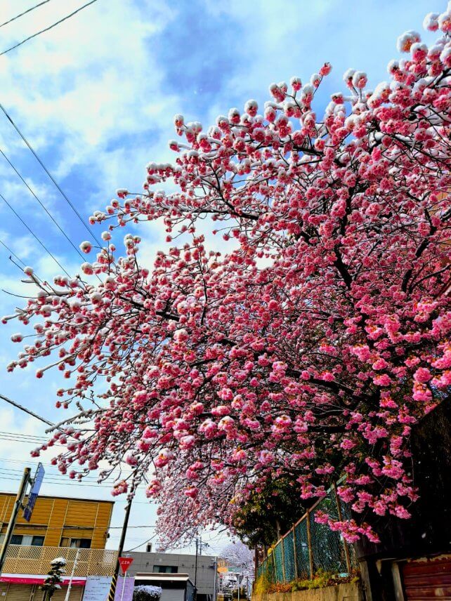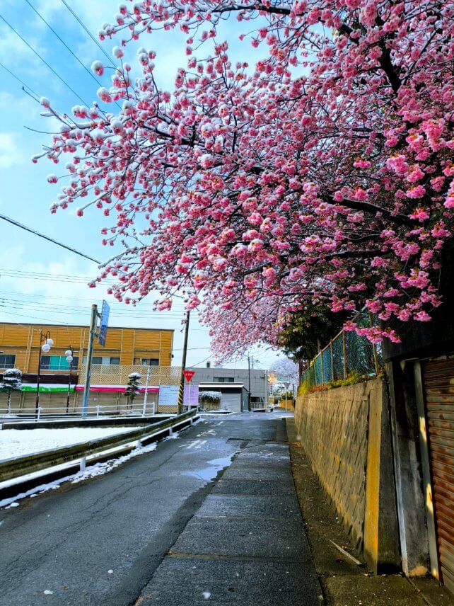 2月に匝瑳で操桜が咲き始めたころに、雪が降りました