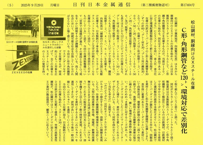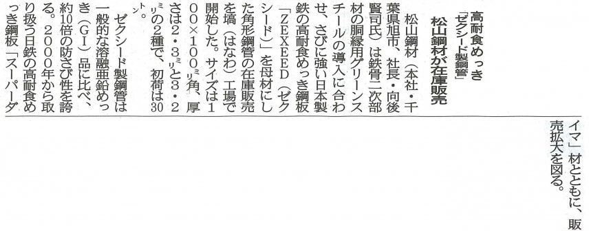 高耐食めっき「ゼクシード製鋼管」松山鋼材が在庫販売