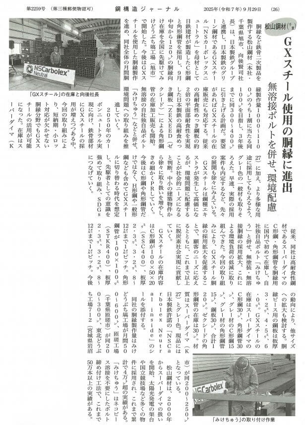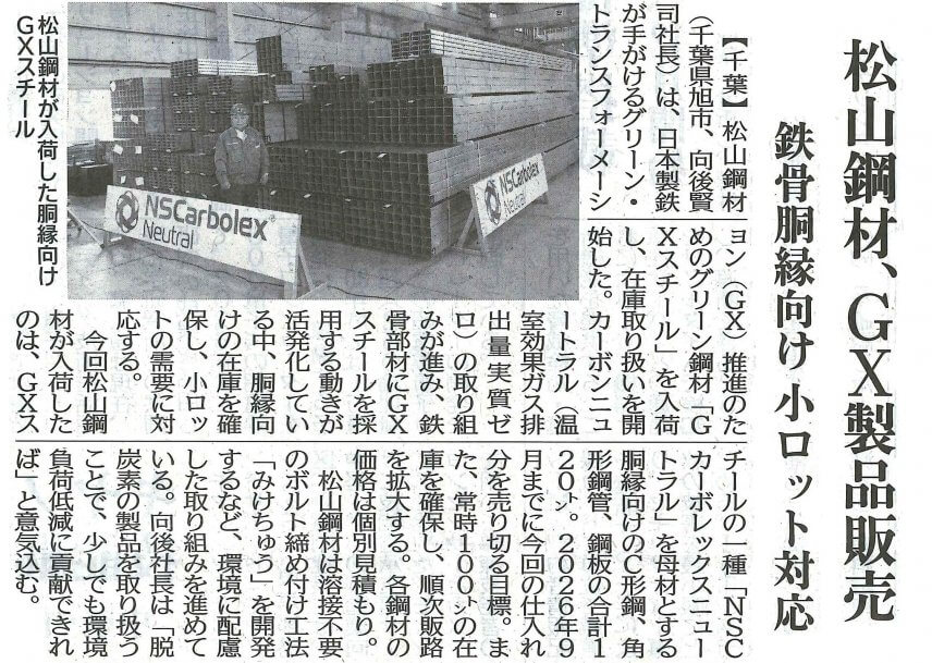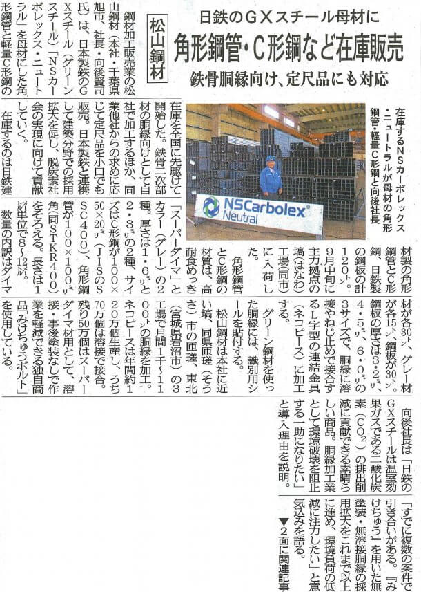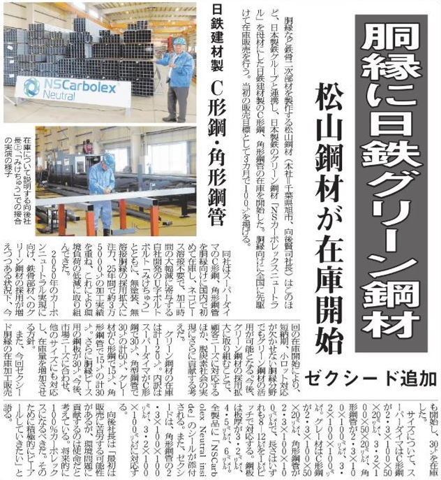 松山鋼材 グリーン鋼材の在庫販売を開始 関連記事